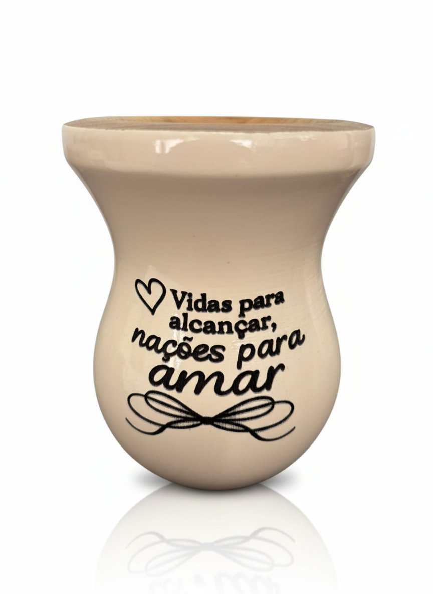 Cuia de chimarrão feita em madeira, resistente e com acabamento artesanal. Além de bonita e funcional, sua compra contribui diretamente com projetos missionários. Uma ótima opção para quem aprecia tradição e deseja investir em um propósito maior. Adquira a sua e faça parte dessa missão!
